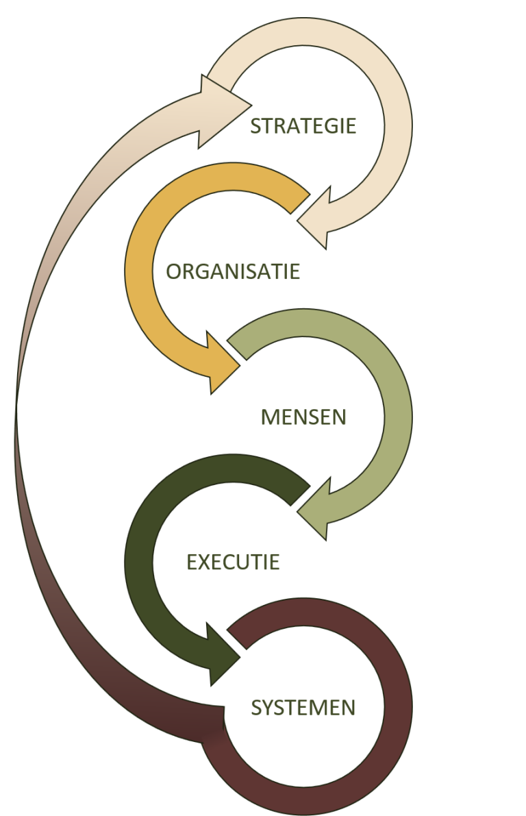 We verbinden strategische intentie met gedrag, inrichting en uitvoering. Zodat beweging niet afhankelijk blijft van losse initiatieven, maar structureel wordt gedragen en geborgd in de organisatie.